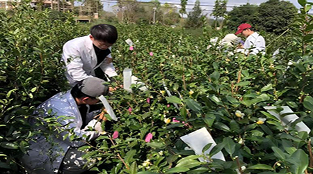 陕西西乡茶叶科技小院学生在给茶树授粉