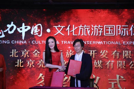 “体验中心”开幕式上,项目正式启动,出席观众不仅体验了仪仗迎宾、汉舞、箭阵操演等传统汉式礼仪,还观看了国粹京剧、旗袍走秀、华夏服饰等精彩演出。在会上,北京金鼠标旅游开发有限公司也与亮相文化、香黛宫、中国景区品牌联盟、北京圣达假期旅行社完成签约。