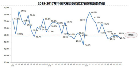 2017年12月份中国汽车经销商库存预警指数为47.7%