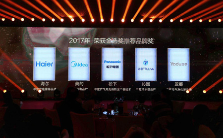 其中海尔、美的、松下、亚都、沁园分别获得了推荐品牌奖的殊荣。