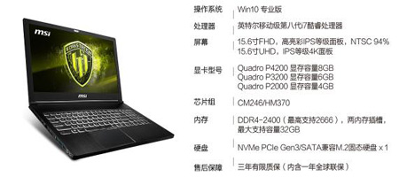 微星台式机工作站与移动工作站历来是业内专业人士的钟爱,它集合了各领域行业设计师, 工程师最关心的创新技术与专业工作性能, 秉承匠心极致 创享未来的主轴, 坚持为专注于创造未来的行业领导者,带来更有效率的实现其设计理念的杀手锏。微星了解行业领导者们对于便携性和高效的需求,此次发布的微星全系列产品标配第八代英特尔® 酷睿® 处理器、最新NVIDIA®  Quadro®显卡, 提升整体运算效能, 从而提升文件处理速度和效率,以稳定的高端品质与轻薄简敛的时尚外观完美契合行业专家所追求的效率与专业形象。无论是台式机工作站或移动工作站, 微星投入极大心力将机身设计的更加轻薄便捷, 让行业设计师和工程师可以随时随地挥洒创意, 并且不受办公空间的限制。
