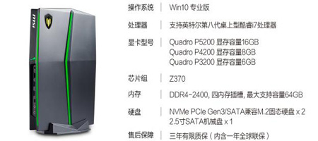 微星科技一直将台式机工作站看做重中之重,这次历时多年所推出的第一台 W25 台式机工作站,简单洗炼的外型,将NVIDIA Quadro P5200 专业显卡的强大效能凝聚在2.5公升的微型机身,不仅解决过往台式机佔据庞大工作空间的痛点,性能更大幅提升40%,同时配备的最新英特尔第八代六核处理器, 也较前一代提升30%的性能,让W25成为处理高端三维和虚拟现实任务的最佳选择。