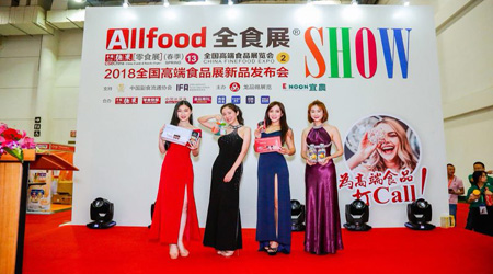 4月27日上午,由龙品锡展览和台湾宜农食品联合主办的 “2018春季全国高端食品展新品发布会”成为了本届全食展的又一大看点。来自海内外近300名食品企业家和经销商等专业人士,共同见证了这场高端食品的时尚秀。现场四位美女模特,手持多款产品,在灯光和音效的配合下闪亮登场,令人目不暇接。