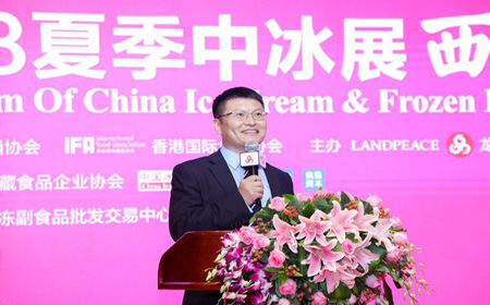 当天下午,作为中冰展配套活动之一的“2018夏季中冰展西安论坛”在华美达广场酒店成功举行。会议现场,著名营销专家、中冰展主席、龙品锡展览总经理王海宁代表主办方为大会致开幕辞。王海宁表示:“西安中冰展是龙品锡展览积极响应‘国家一带一路倡议’的具体表现。随着中西部地区的大发展,中原地区和西部地区的广大消费者开始消费升级,对于优质的冰淇淋和冷冻冷藏食品的需求逐步攀升。于是,2018西安中冰展就应运而生了。就近年来中西部冷冻冷藏食品行业的发展,陕西冷冻冷藏食品企业协会会长陈苏文在发言时表示,挑战与机遇是并存的,食品行业的发展在一定程度上反应了国民的生活质量和健康水平,尤其是作为“朝阳产业”的冷冻冷藏食品行业。他谈到:“中西部地区对于肉制品、冷冻食品的需求量非常大,包括陕甘宁青、新疆地区的消费者等都是肉食、冷冻冷藏食品的爱好者,2018夏季中冰展落户西安,是市场选择的结果,也是多方共同努力的成果。”