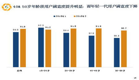 年轻一代用户满意度下降,40~50岁年龄段用户满意度提升明显