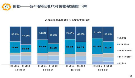 在价格方面,用户消费总体价格超出预算多少会更换门店,各年龄段用户对价格敏感度下降。走访各地区经销商过程中,受到促销优惠活动影响,大部分300元以内的用户都转入“无影响”中,对于这部分价格敏感的用户,经销商应该重视避免用户流失。