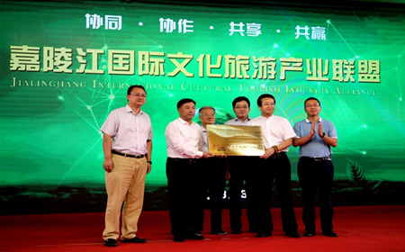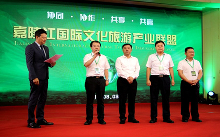 在上午的开机仪式上,由重庆合川区人民政府 、四川省南充市人民政府、甘肃省陇南市人民政府和陕西省凤县人民政府共同发起,沿江30余个区县共同参与的“嘉陵江国际文化旅游产业联盟”正式成立,同时30多个市、区、县文化旅游系统的领导在合川区人民政府区长徐万忠的带领下共同发表了《嘉陵江绿色宣言》——“同饮一江水,共爱母亲河。让母亲河永葆青春与活力,让绿水青山变成金山银山。珍爱嘉陵江自然生态,共塑嘉陵江绿色品牌,探索嘉陵江绿色崛起!”