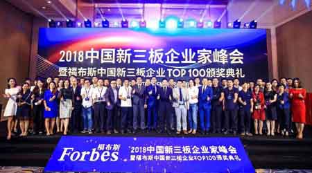 9月5日,由福布斯中国和北拓资本联合主办,中国新三板企业家联合会支持的“2018中国新三板企业家峰会暨中国新三板企业TOP 100颁奖典礼”(以下简称“峰会”)在北京中国大饭店隆重举行。