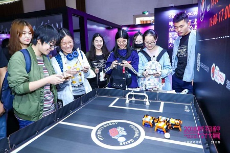 “2018新物种设计展”符合年轻人的娱乐天性,观展同时玩游戏,“导览图”正像一张寻宝图,观众在互动点参与互动,集得图章换取娃娃机游戏币,就有机会获得创新产品的周边衍生品。此外能参与互动的还有亮风台HiAR G100 AR眼镜、虚视界VR 景观、凯帝狮爱镖飞镖机、云上社稷、百变小强编程玩具机器人,观众可在最后用甜点划上美完体验的句号——“ICE机摩人”冰淇淋机现场生产冰淇淋。