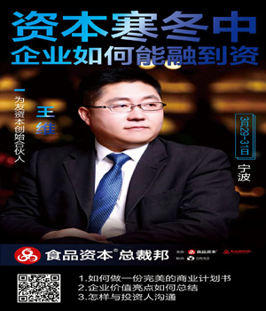 帮助企业家提升管理和融资能力 食品资本总裁邦宁波将办