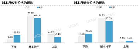 谈及下月预期,二手车经理人表示:上海车展新车集中上市,消费者关注点聚焦在新车市场,同时,新车价格也在下调,导致二手车消费需求降低。另外,国六排放标准的即将实施及电商平台的产品多样化,对实体经营的冲击较大,现阶段收车较为困难,影响二手车销量及利润。