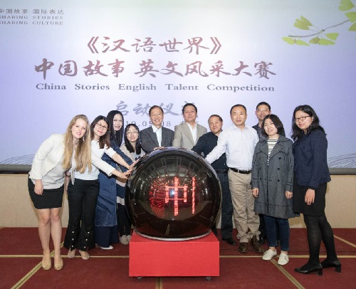最后,全体嘉宾共同触摸点亮水晶球并合影留念,宣布“《汉语世界》中国故事 英文风采大赛”正式启动,预祝首届大赛圆满成功。