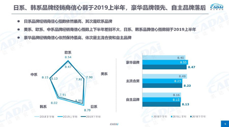 日系、韩系品牌经销商信心弱于2019上半年,豪华品牌领先、自主品牌落后