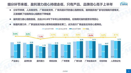 细分环节来看,盈利潜力信心持续走低,只有产品、品牌信心高于上半年