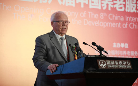 同时出席开幕式及主论坛的嘉宾还有全国老龄工作委员会办公室副主任吴玉韶,中国社会福利与养老服务协会首届会长刘光和,北京市民政局局长李万钧,全国总工会原副主席张世平,中国社会福利基金会理事长戚学森,中国社会健康管理协会会长郭渝成、中国慈善联合会副会长兼秘书长刘福清;俄罗斯联邦老年和老年病理学协会会长沙巴林·弗拉吉米尔,加拿大驻华大使馆商务一等秘书隆克理,法国驻华大使馆商务投资参赞、中国商务投资处主任范迪博,荷兰使馆卫生福利和体育参赞博沛,德国F+U萨克森公益教育集团董事长福克码·麦霍德,新加坡宜康医疗保健集团主席王再保等。