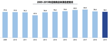 调查显示,2019年经销商总体满意度得分为78.1分,比去年大幅下降1.2分。