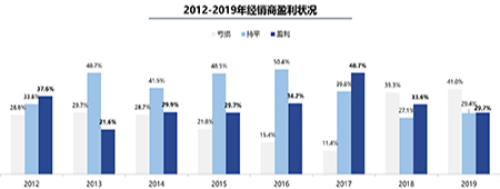 二、2019年经销商经营困难 平均毛利率首次出现负值