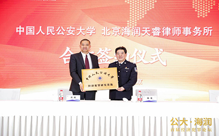 “公安大学是共和国警官的摇篮、公安实务研究的前沿。能与公安大学建立校所合作,我们深感荣幸。”北京海润天睿律师事务所副主任高超表示,此次校所合作将对海润天睿深化理论研究、提高业务能力产生积极而深远的影响。依托于商事法律业务的深厚积淀,海润天睿在刑事业务尤其是经济犯罪领域独具优势,曾处理过多起新型、重大、疑难的经济犯罪案件,积累了丰富的法律实践经验。在与公安大学的合作中,海润天睿会将在法律实践中遇到典型案件、疑难问题,与校方专家共同研究,形成智力成果,发挥好经济犯罪研究基地的作用。