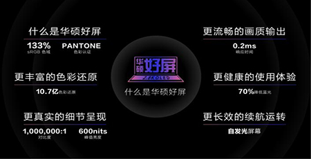值得关注的是,灵耀Pro16是全球首款搭载4K 16:10 的OLED黄金大屏的笔记本,让生产力能够物以其用,其100%DCI-P3广色域及PANTONE色彩认证、10bit 10.7亿色彩、1000000:1对比度及550nits峰值亮度、0.2ms极速响应时间、支持DC调光及70%降低蓝光及持有自发光屏幕,六大重磅技能加持,为用户带来美轮美奂的视觉享受。