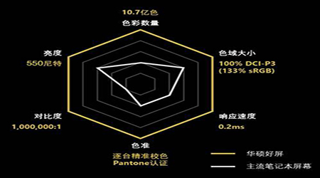 100%DCI-P3广色域及PANTONE色彩认证、10bit 10.7亿色彩、1000000:1对比度及550nits峰值亮度、0.2ms极速响应时间、支持DC调光及70%降低蓝光及持有自发光屏幕,六大华硕好屏功能重磅加持,为用户带来了美轮美奂的沉浸式视觉体验。