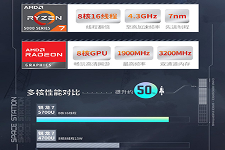 从产品的性能来看,全新搭载AMD锐龙7 5700U/AMD锐龙5 5500U高性能处理器,16GB 3200MHz双通道DDR4内存512GB SSD以及Radeon Vega8核显,并且配置了AIPT智能加速引擎技术,保持优秀的续航、温度和噪音。在整体性能上,更拥有40%的提升幅度,无论是用户应对日常工作学习,还是畅玩LOL,DOTA2,CS·GO等主流网游,都能够游刃有余。