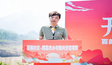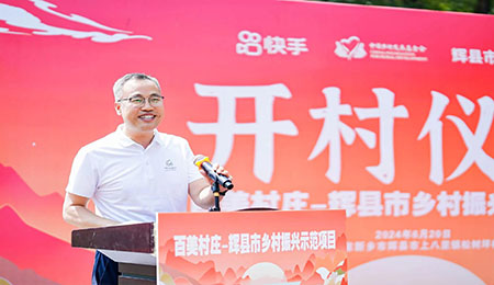 辉县市委书记李继游致欢迎辞,指出百美村庄·辉县市乡村振兴示范项目汇聚了北京快手科技有限公司、中国乡村发展基金会等各方资源力量,既是辉县市引入市场机制、带动群众增收致富的成功探索,也为加快乡村民宿产业发展、促进乡村全面振兴提供了可复制推广的有益经验,同时更是拉开了多方深度合作的崭新序幕。