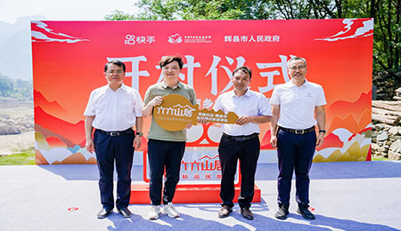 仪式上,中国乡村发展基金会副秘书长王军、北京快手科技有限公司企业社会责任高级总监杨洪跃、辉县市委书记李继游、松树坪村党支部书记兼合作社理事长黄学忠,共同为百美村庄·辉县市乡村振兴示范项目六六山居精品村宿进行揭幕。