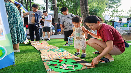 7月28日下午,别开生面的“拾分有趣”可持续市集在北京市怀柔区雁栖镇神堂峪村“开摆”。2024年度的总决赛队伍、3个社团代表,将他们的创意和热情带到了这个美丽的乡村。现场展示了团队设计的产品模型,策划了一系列对应的“可持续”主题游戏,让参与者在互动中感受环保的重要意义。