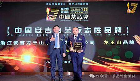 另一家来自浙江安吉白茶龙头企业“龙王山茶叶公司”2022年曾上榜金芽奖,本年度凭20多年深耕于安吉白茶领域的技术实力,再次摘得“中国安吉白茶标志性品牌”年度大奖桂冠!董事长潘元清荣耀获得“陆羽奖”国际十大杰出贡献茶人,成为浙江茶企业中一颗冉冉升起的品牌企业。