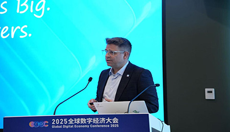 北京市经济和信息化局二级巡视员邵明红在致辞中介绍了北京建设全球数字经济标杆城市的成果及未来 “十五五” 规划思路,并强调中东是“一带一路”重要合作伙伴,也是全球数字经济发展最具潜力的地区,表达了通过全球数字经济大会促进双方在数字技术创新、数字产业发展、数字人才培养等方面的深入交流与合作的愿景。